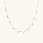 A necklace that would simply adorn your neck with grace and sophistication.Juliet is a necklace of exquisite beauty and elegance. A gold chain holds a cascade of small diamond simulants, creating a mesmerizing shimmer and movement.