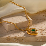 The Caelus adds a touch of vibrant elegance to your look. Its diamond-studded heart pendant and sparkling emerald centerpiece create a captivating statement, perfect for those who embrace bold style.